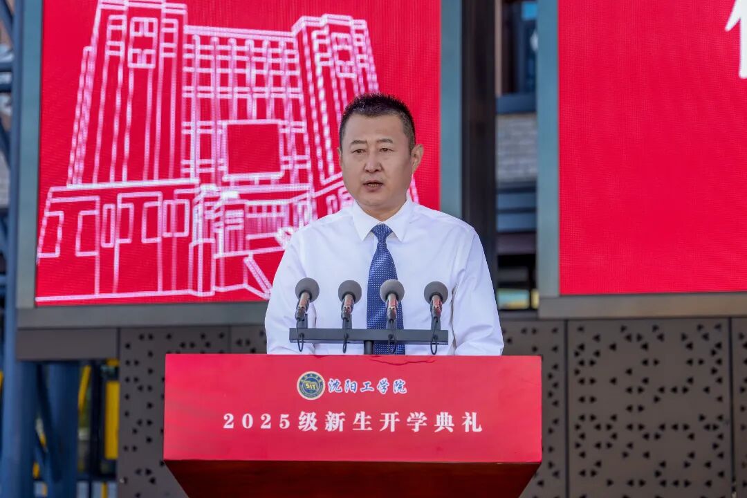 校长李康举的致辞,满含期许与嘱托。他代表学校向2025级新生致以热烈欢迎,细数学校在人才培养、科研创新领域的坚实成果——从AI实验室的升级迭代,到智能体教学系统的全面应用,再到与19家龙头企业深度合作共建现代产业学院,每一项成果都彰显着沈工“数字化赋能教育”的坚定初心。“学校的现代产业学院是你们的实践沃土,校园智能体平台是你们学习进步的强大工具,教师是你们的助力者和引路人。珍惜并利用好沈工给大家提供的资源,大胆规划并积极探索自己的大学旅程,我们将为同学们的规划和成长保驾护航”,一字一句,既是对新生的殷切期望,更是为他们未来四年“与智能同行”的成长之路,锚定了方向。